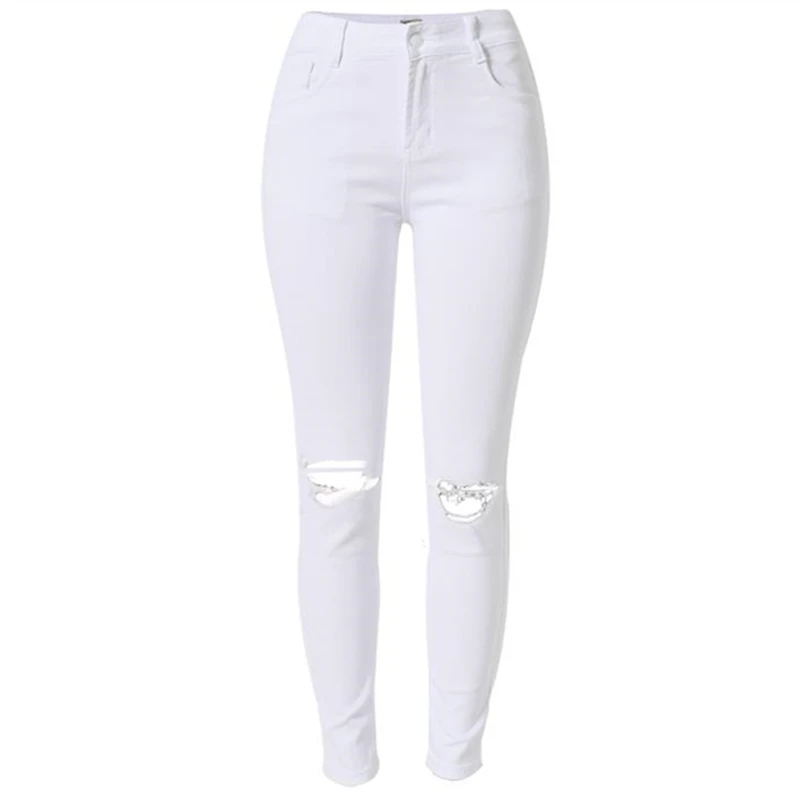 Jean A Trou Femme: Pantalon crayon uni bouton jeans pour femmes.
